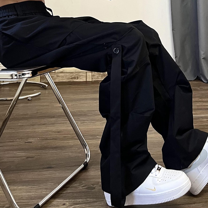IEFB High Street Pleated Overalls Men's Pants Fashion Loose Straight Button Casual Male Trousers Solid Color Darkwear 9A6007