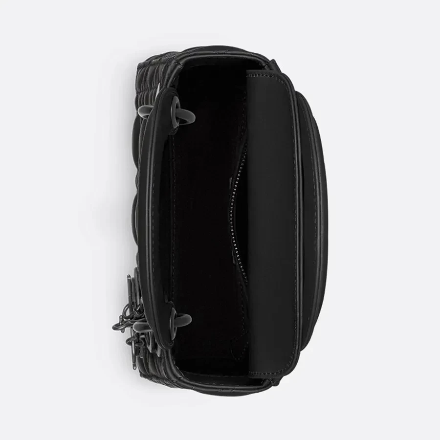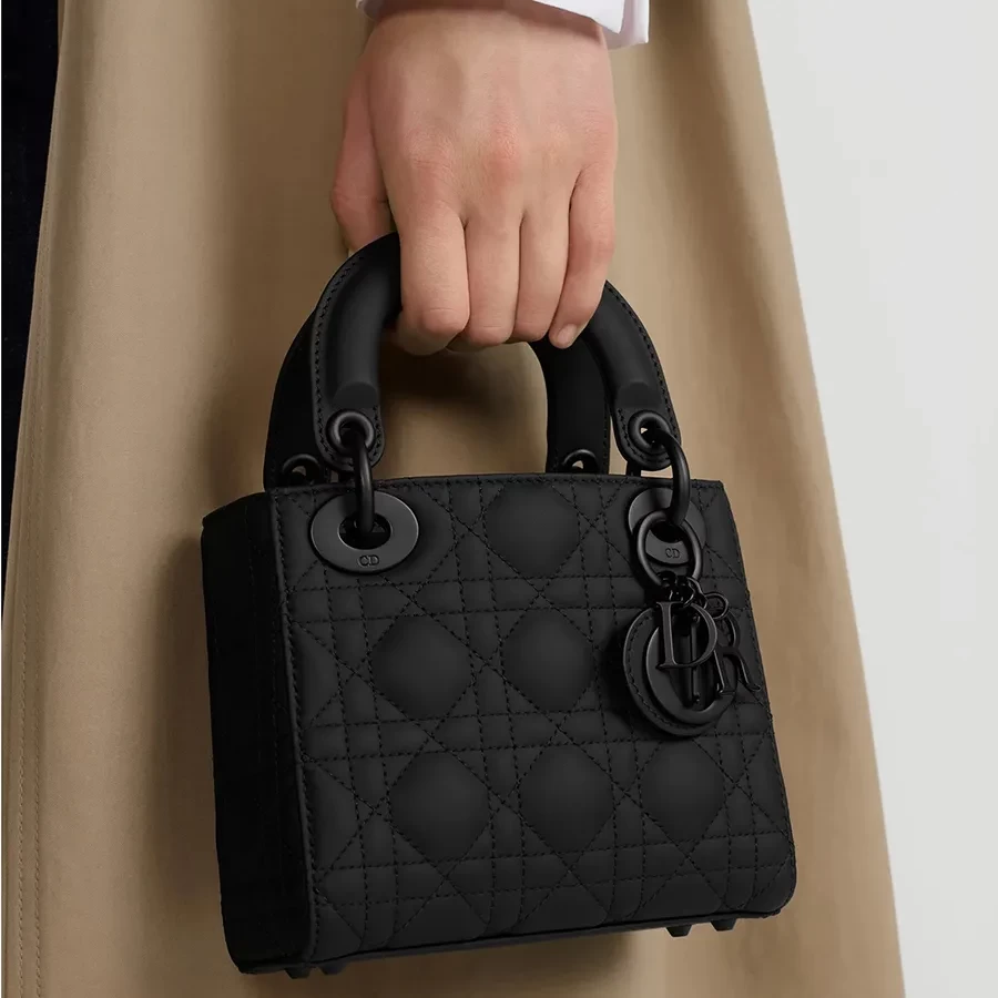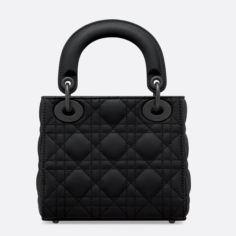 Thiết kế túi kiểu dáng nhỏ nhắn, sang trọng nổi bật với những chiếc charm kim loại chữ "DIOR" mạ cùng tông màu đen làm nổi bật tổng thể. Với dây đeo vai dạng chuối  phôi da có thể tháo rời, chiếc túi Lady Dior thu nhỏ này có thể cầm tay hoặc đeo chéo như một người bạn đồng hành lý tưởng cho mọi trang phục.