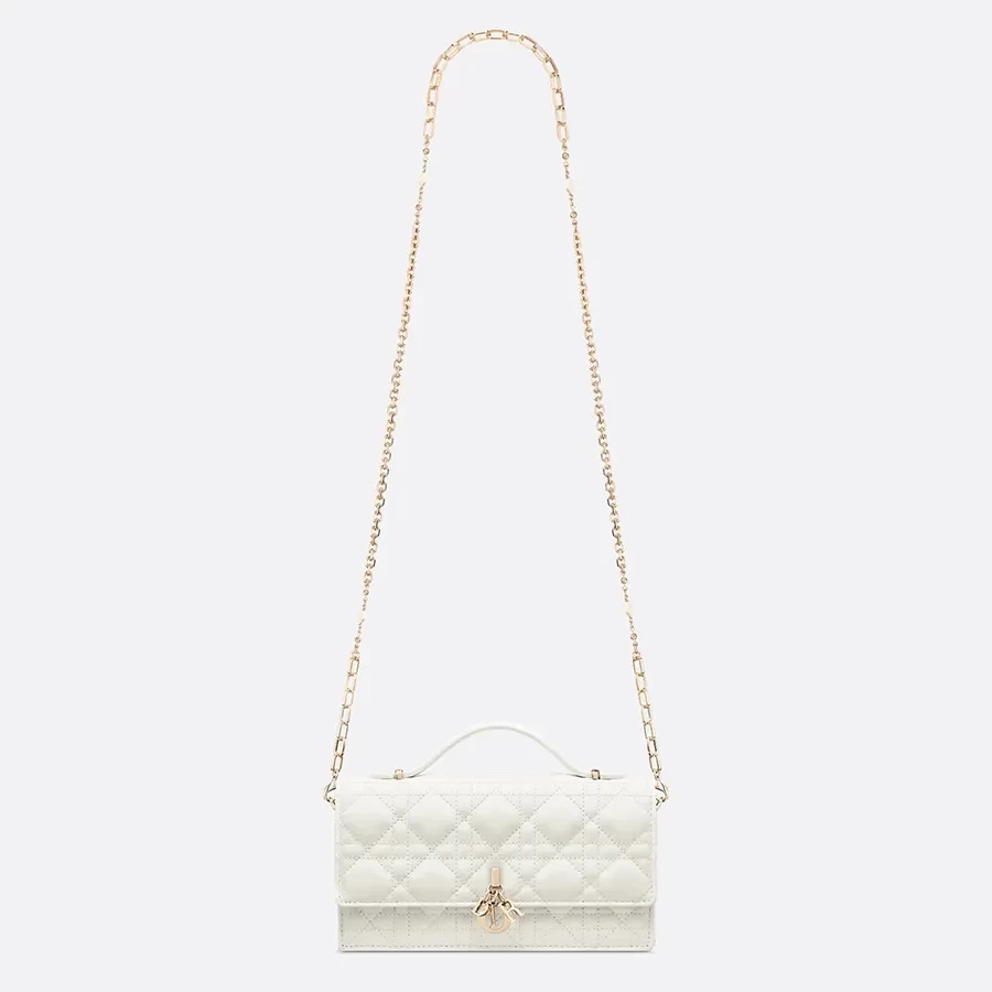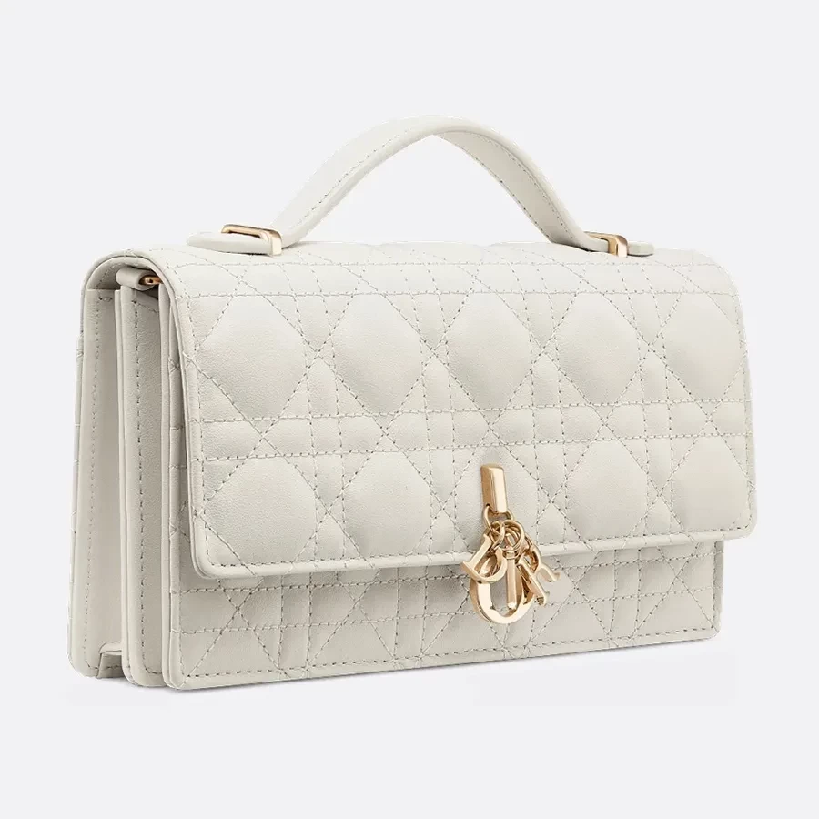 Túi xách tay nữ Dior My Dior Mini Bag Latte Cannage Lambskin màu trắng là biểu tượng của vẻ đẹp tinh tế và sang trọng. Thiết kế nhỏ gọn với chất liệu da mềm mịn, kết hợp họa tiết đặc trưng và gam màu trắng thanh lịch, mang đến phong cách nhẹ nhàng nhưng đầy cuốn hút. Chiếc túi là điểm nhấn hoàn hảo cho các quý cô yêu thích sự nữ tính và đẳng cấp, phù hợp cho cả dạo phố, dự tiệc hay những dịp đặc biệt.